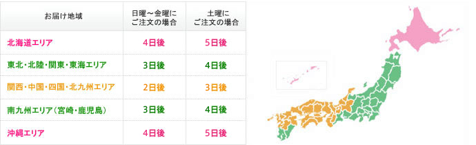 - ※離島・山間部は、お届け日数が異なります。あくまで目安としてご覧ください。